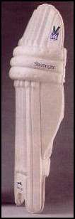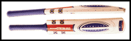 Bat -- The wooden paddle with which the batsman defends his wicket and scores his runs. The law limits its width to 4.25 inches and its length to 38 inches, although such a bat would be too long even for a batsman of six foot five. There is no limit on weight, although most bats weigh between 36 and 48 ounces. The blade of the bat has a flat face, slightly rounded at the edges; the back is shaped so that the blade is only about an inch thick at the shoulders, but swells to form a hump about six inches from the toe. This corresponds to the middle or 'sweet spot' of the bat, where its hitting power is greatest. The handle is made of as many as 12 pieces of cane, with rubber leaves to provide springing. The quality of the handle can make a huge difference to the feel and performance of a bat, so much so that most makers offer a 'reblading' service, where a cracked or worn-out blade is replaced, so the batsman can continue with a trusted handle. Many modern handles are oval in section, which allows the batsman to judge the correct position of his hands more easily than a round handle. The handle is wound with string and covered with one or more tubular rubber grips, according to the batsman's preference and the size of his hands. Replacing a grip is a job akin to fitting a tyre to a tractor wheel - only much, much harder. Do not try this at home.