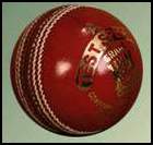 with a cover of polished red leather, a cricket ball weighs 5.5 oz.