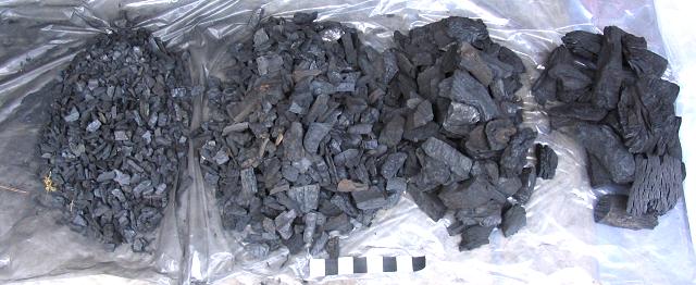 The bag of lump contained no scrap, but did contain one small leaf and one small twig. What was a bit concerning was the quantity of wood which appeared to be incompletely carbonized. 3.9 pounds or 18.9% by weight of the charcoal fell into this category. You can see photos below of the pile of incompletely carbonized pieces and a closeup of some of the worst pieces. The result is that the charcoal is fairly smokey when burning.