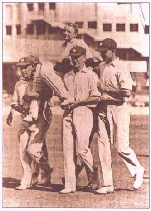 Donald Bradman being carried off the field by his New South Wales
