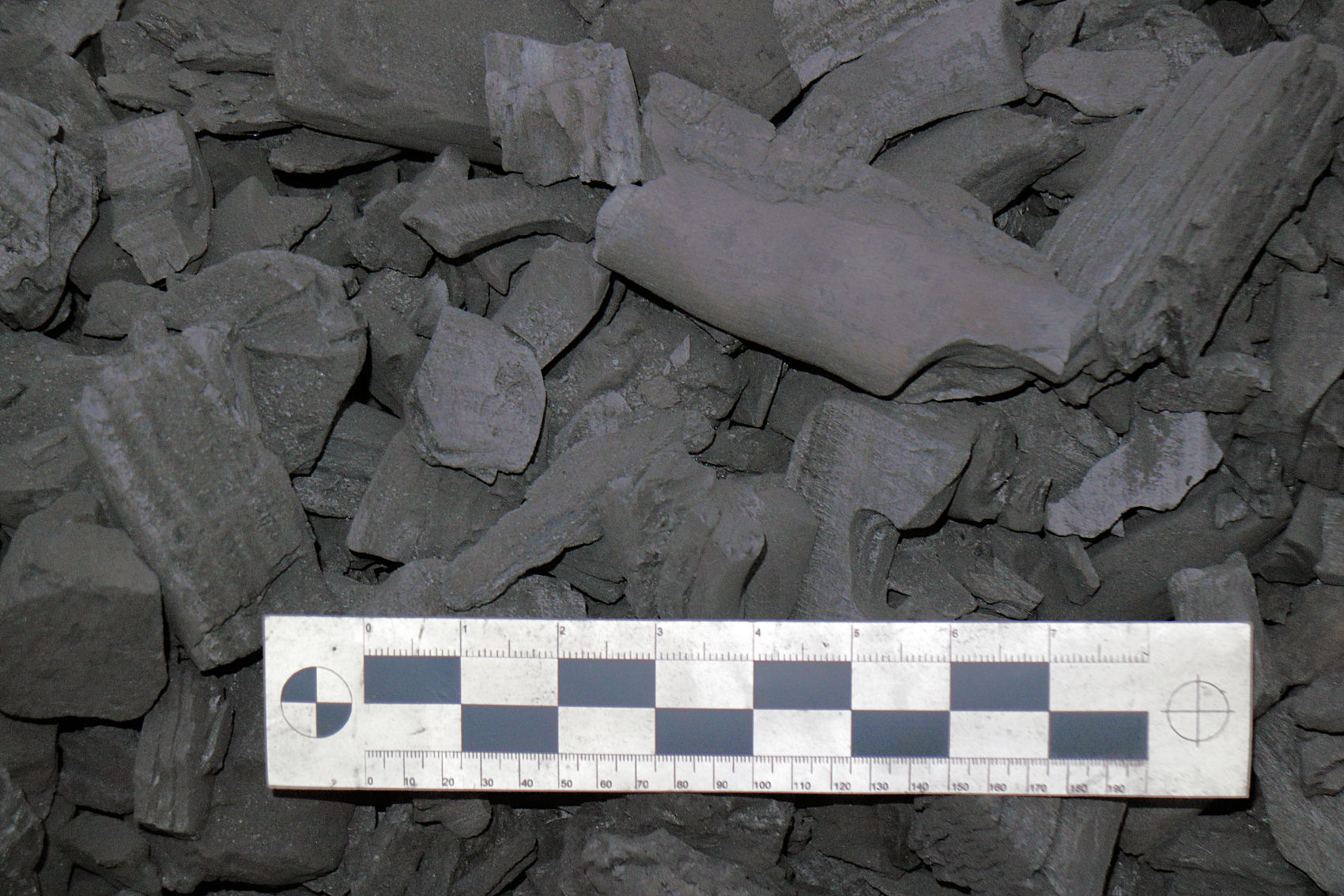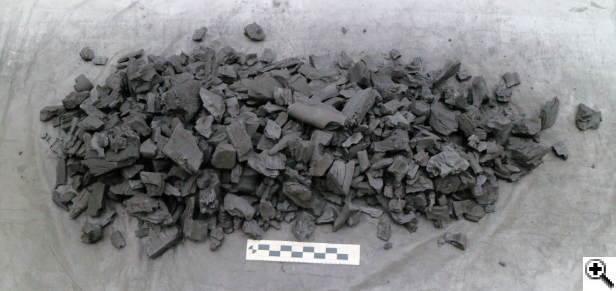 dump the charcoal out on the ground and inspect it for rocks, uncarbonized pieces, scrap and in general anything that
