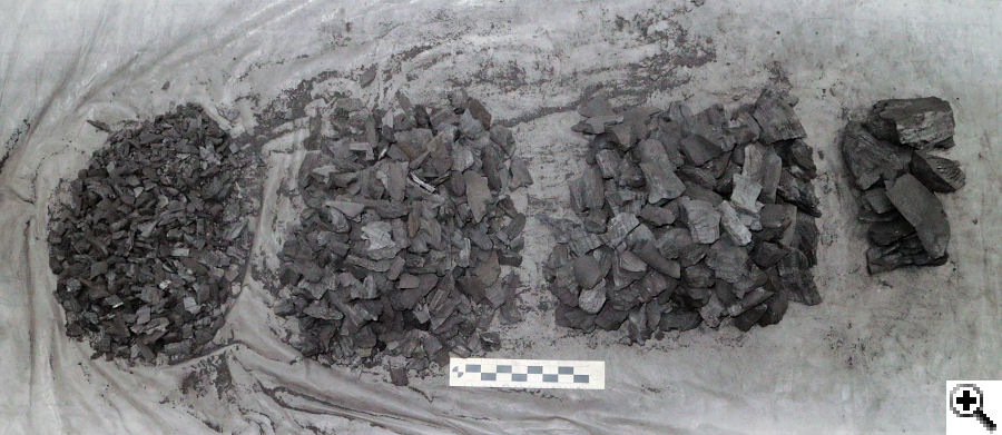 doesn't belong. We found nothing but charcoal. The following table shows you the distribution of sizes: