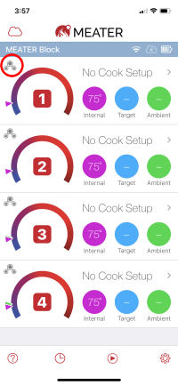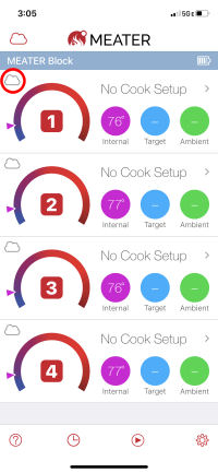 MEATER Link: This method allows a smart device to connect to the MEATER Block over your network without going out to the internet and connecting to the MEATER Cloud servers. Both the smart device and the MEATER Block must be connected to the same network. Also, the smart device must be running the MEATER app and must have MEATER Link enabled.The following screen shots show you how to identify which method you are currently using to connect. The small icon circled in red at upper left shows from left to right, MEATER Link, and MEATER Cloud.MEATER Cloud: This method allows a smart device to connect to the MEATER Block by going out onto the internet and connecting via the MEATER Cloud Servers. The Cloud function must be enabled on the MEATER Block. Your smart device must be running the MEATER App, have MEATER Link enabled and have MEATER Cloud enabled. This method is used when your smart device and the MEATER Block are connected to different networks, for example when your smart device is away from home and using a cellular data network. Note, however, that if your smart device returns home and connects to your network, communications will automatically switch from MEATER Cloud back to MEATER Link.