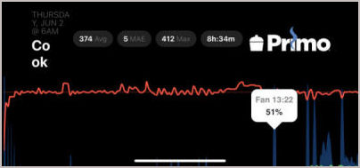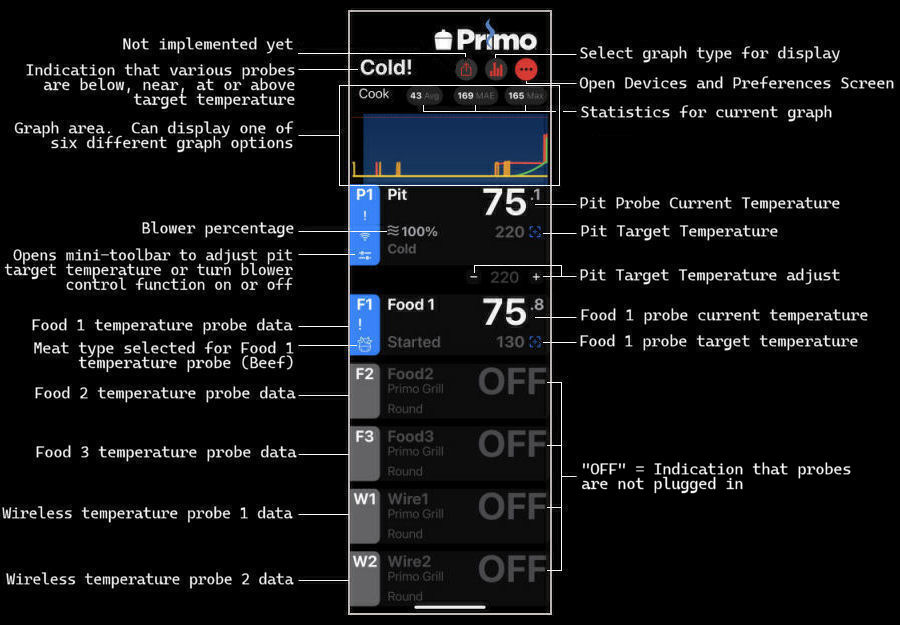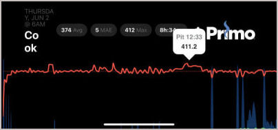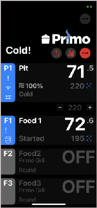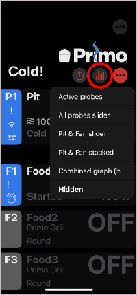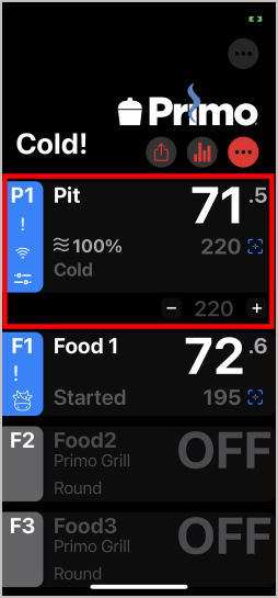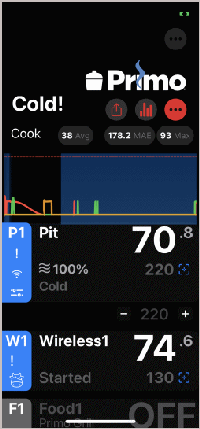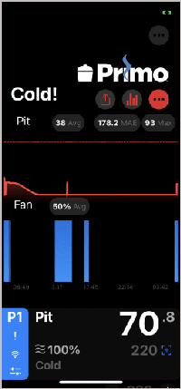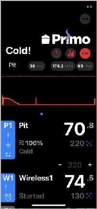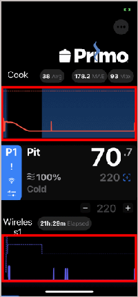 graphed at that point. In the following two images, we have turned our phone sideways and tapped on the pit temperature