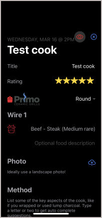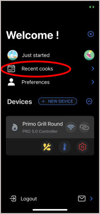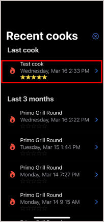 3. Recent Cooks: Here you will see a list of recent cooks. Tap on any entry to see the cook. |