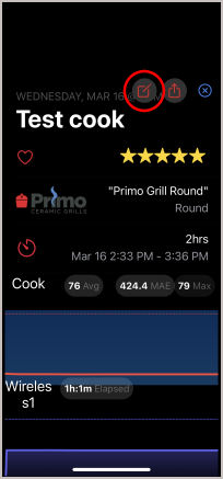 4. You will be presented with all the relevant data for that particular cook. Tap on the "Edit" icon to edit the cook. |