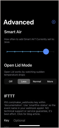 3. On the Advanced settings screen, you can configure the Smart Air option and the